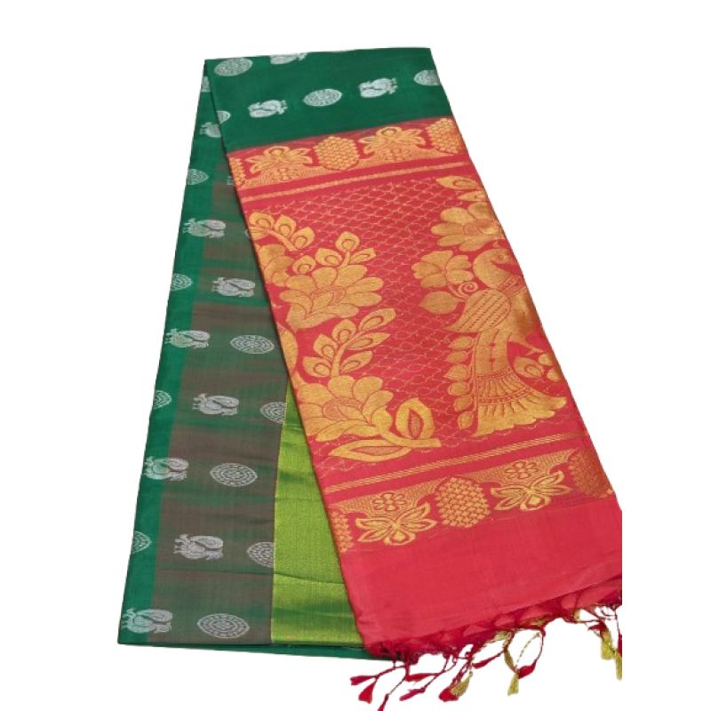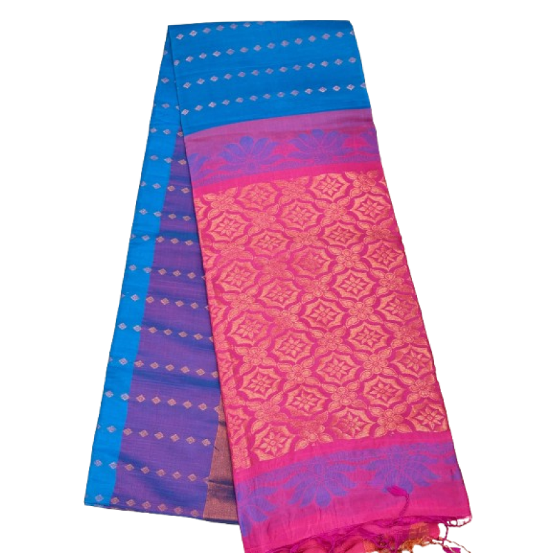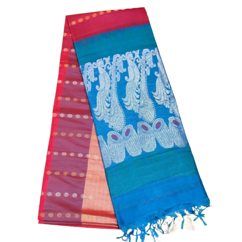 This elegant Mixed Pattu Saree blends the richness of silk with lightweight mixed fabrics, offering comfort without compromising on traditional style. Featuring beautiful zari borders and intricate motifs, it's perfect for weddings, festivals, and special occasions. Easier to drape and maintain than pure silk, it's a stylish and practical choice for all-day wear.
